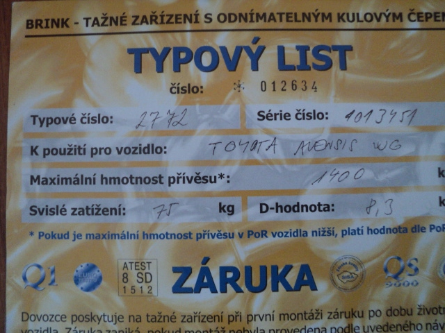 | - Závěs odnímatelný (bajonet) - přesnou cenu je nutné ověřit u prodejce | 15 000 Kč |